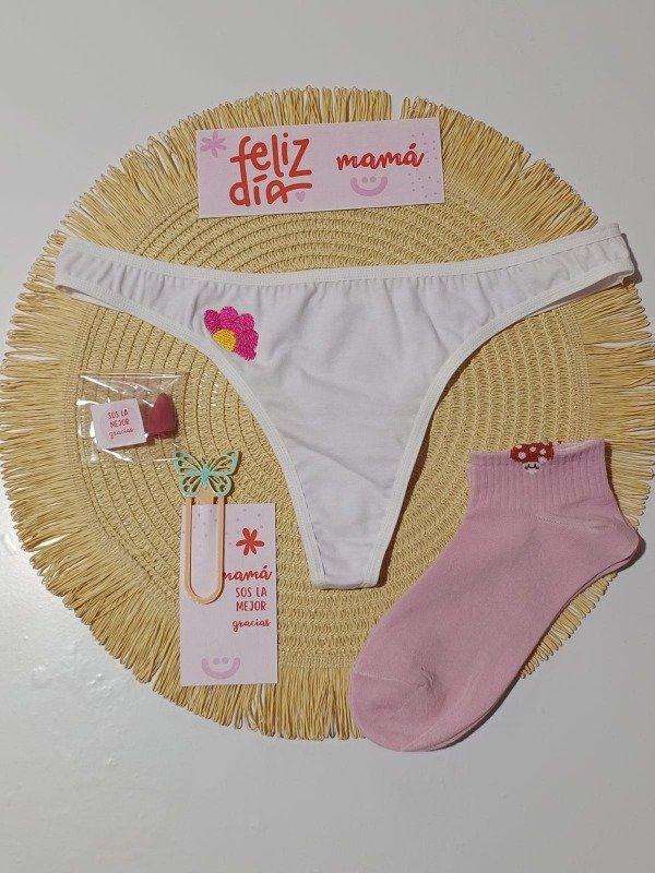 1 Colaless de algodón con bordado de flor (talles 2 y 3).